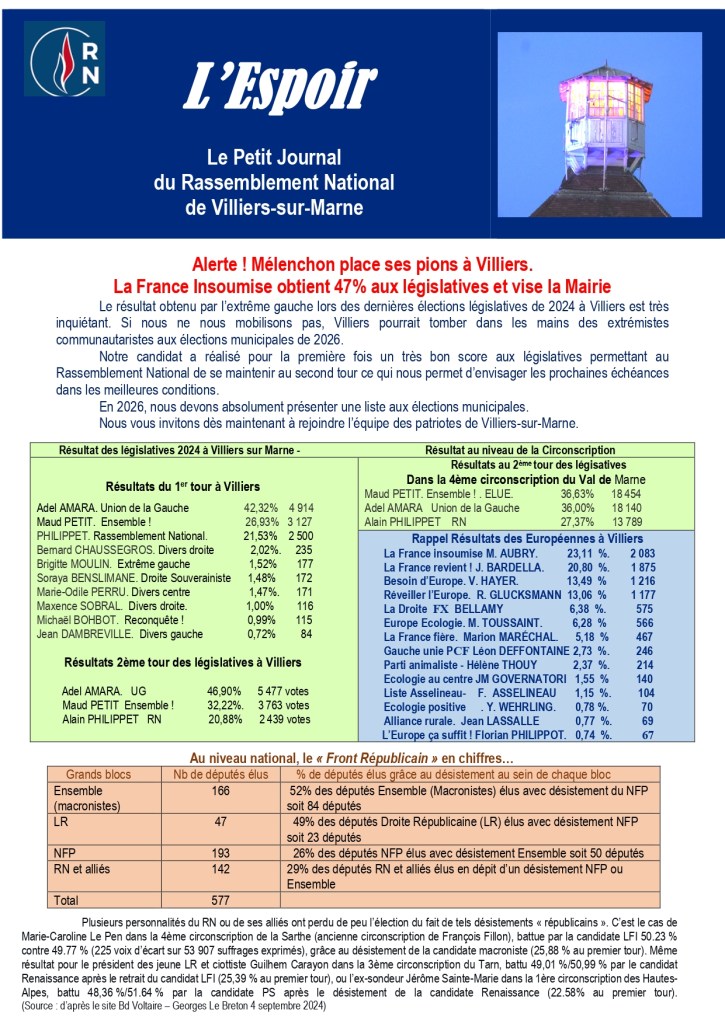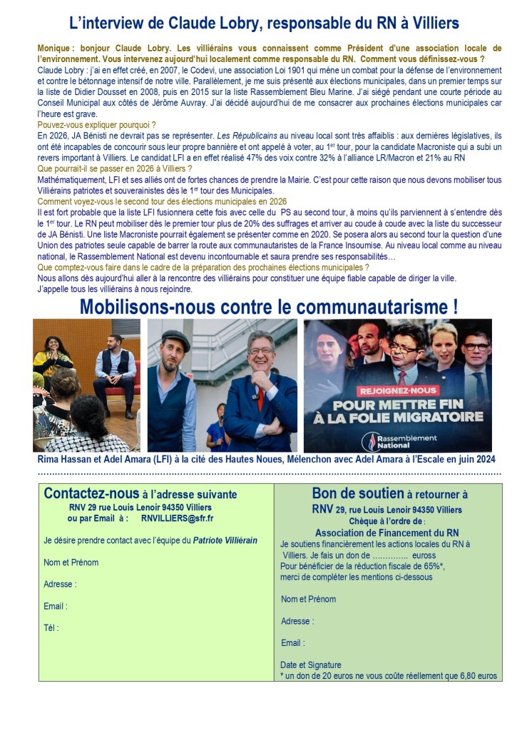 Nous appelons toutes les forces patriotes et souverainistes de Villiers sur Marne à s’unir lors des prochaines élections municipales.